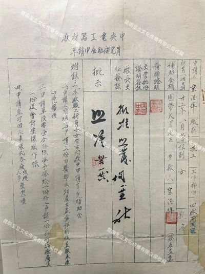 ▲1943年10月中央電工器材廠(chǎng)(昆明電纜集團前身)發(fā)放職工育兒補助國幣300元。