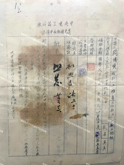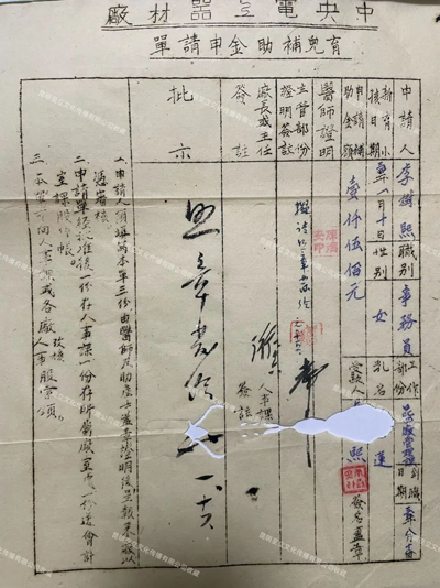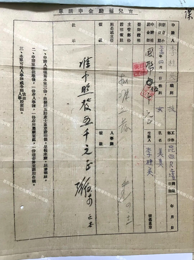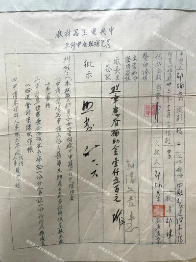 ▲1942年9月,中央電工器材廠(chǎng)(昆明電纜集團前身)發(fā)放職工育兒補助國幣200元。