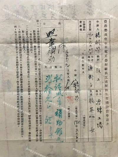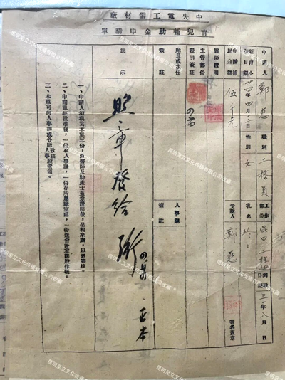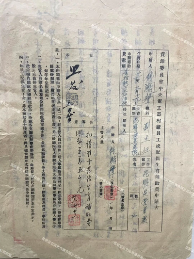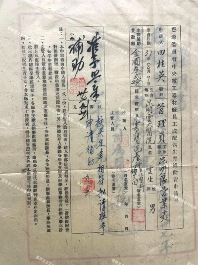 ▲1947年2月中央電工器材廠(chǎng)(昆明電纜集團前身)發(fā)放職工育兒補助國幣55000元。